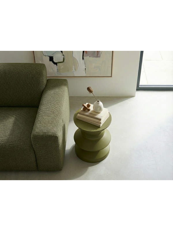 Zeytin yeşili Askella yan sehpa, ahşap, taş ve doğal dokularla mükemmel uyum sağlar. Minimal, modern ve doğal dekorasyon stillerinde huzurlu bir denge oluşturur. Açık tonlu alanlarda yumuşak bir kontrast, koyu tonlu mekânlarda ise bütünleyici bir şıklık sunar.